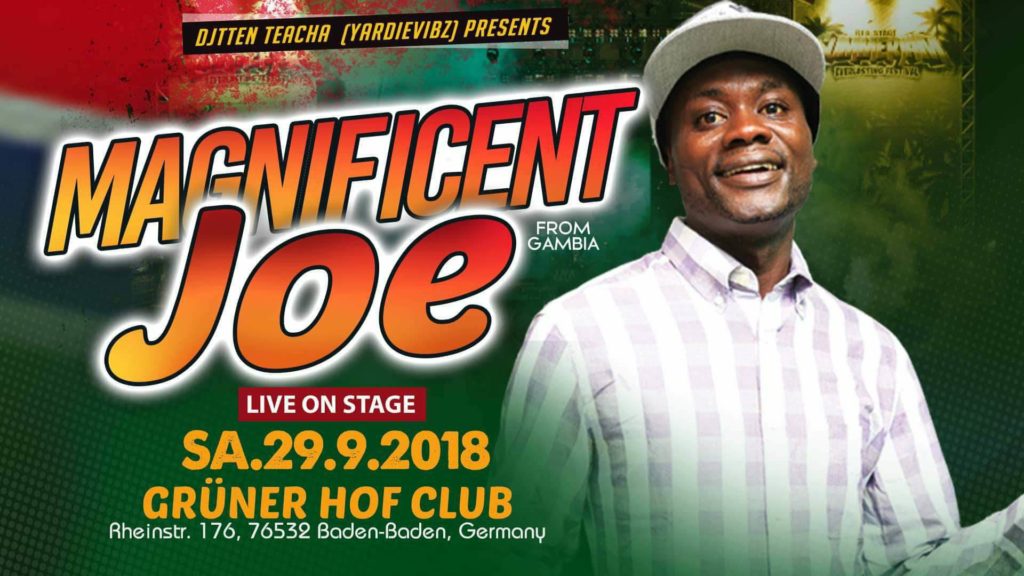 Gambia’s reggae super star, Magnificent Joe, is making big waves in his premier debut tour of Europe. Already, there are plans for him to record a ten track project with renowned German music producer, Klaus Dieter Kausgen.