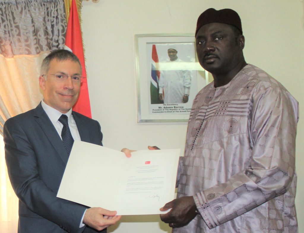 The Honourable Minister of Foreign Affairs, International Cooperation and Gambians Abroad, Dr. Mamadou Tangara, on Tuesday 14th January 2020 received the new Ambassador of the Republic of Turkey, His Excellency Tolga Bermek who, presented to the Foreign Minister copies of his Letters of Credence.