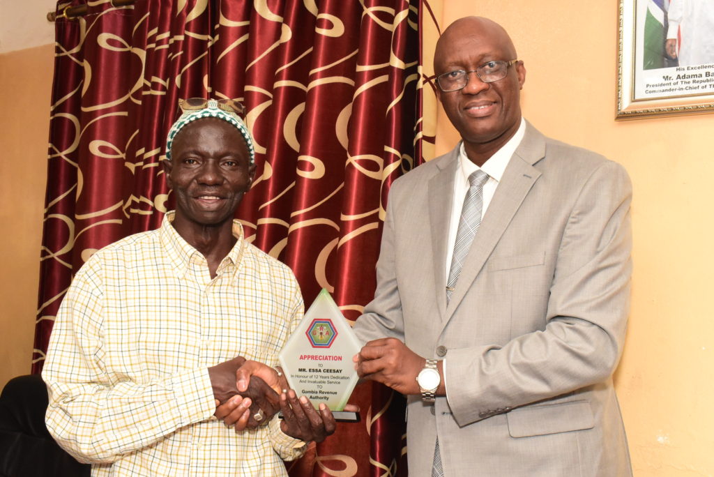 Yankuba Darboe, Commissioner General Gambia Revenue Authority presided over the retirement of two staff namely, Abdoulie Bojang, senior Customs Guard and Alhaji Essa Ceesay.