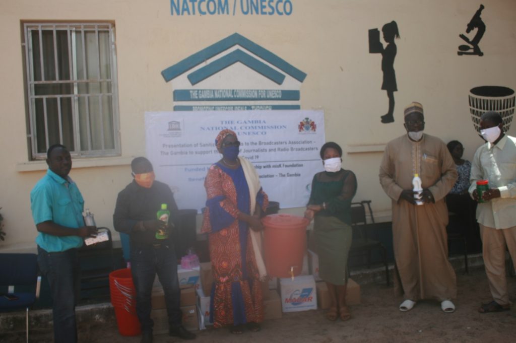 The Gambia National Commission for UNESCO Tuesday presented different sanitizing materials to the Broadcasters Association – The Gambia (BAG) to support the safety of journalists and radio broadcasters in this Coronavirus pandemic period.