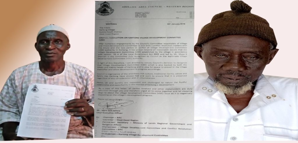 An excerpt from the letter dated 30th January 2019 states that “After numerous engagements by the Council’s Committee responsible of Village and Ward Development Committee (V and WDC) conflict resolution matters with the Alkalo and the two parties in conflict of Village Development Committee (VDC) authority in Kartong, it has proven beyond all reasonable doubts that the Village Development Committee (VDC) established by the village in accordance with section 92 A of the Local Government Act 2002 and led by Mr Musa K manneh is the committee duly recognized by Council as the legitimate Village Development Committee (VDC) authority.”