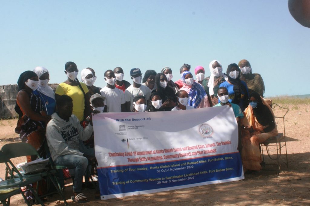 The training designed for youths and community women under the theme “Combating Covid-19 Impairment at Kunta Kinteh Island and Related Sites in The Gambia through Skills Acquisition, Community Outreach and Peer Exchange” started in Juffureh and Albreda in October 2020.