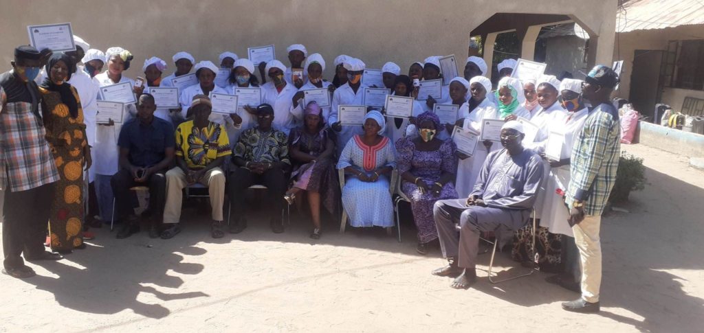 Trainees were trained on packaging and levelling and most importantly hygiene and sanitation. Groundnut cake, pepper sauce, orange marmalade, complementary food and mix fruit juice.