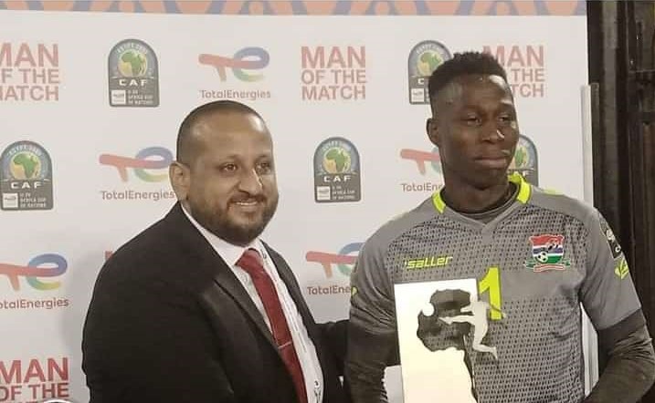 Goalkeeper Pa Ebou Dampha who was named TotalEnergies Man of the Match played a key role in the historic victory for The Gambia.