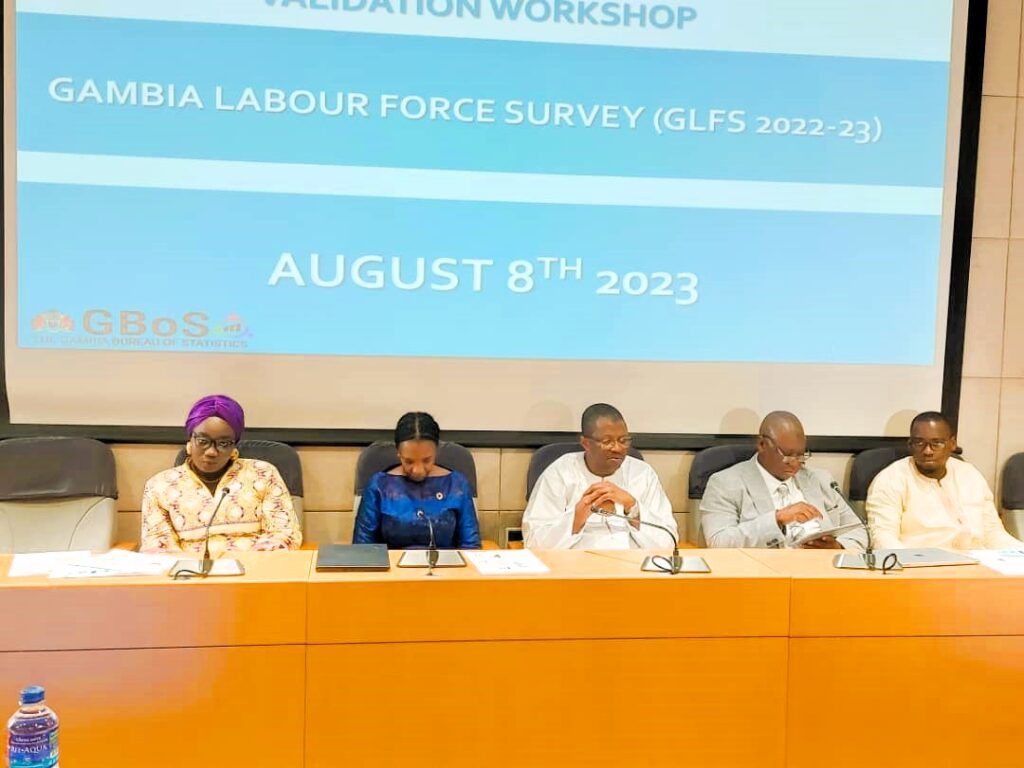 The Minister of Trade, Industry, Regional Integration and Employment (MoTIE), Hon. Baboucarr Ousmaila Joof, on Tuesday, August 8, 2023, presided over the 2022-23 Gambia Labour Force Survey (GLFS 2022-23) validation workshop held at the Sir Dawda Kairaba Jawara International Conference Center.