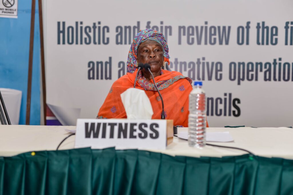 Mrs. Soma Jallow was the third revenue collector witness to appear before the LGCI sitting held at Djembe Hotel, Senegambia to give her testimony on her involvement in the council fund of D16,250 given to Mr. Lamin Susso, the Finance Director of the council.