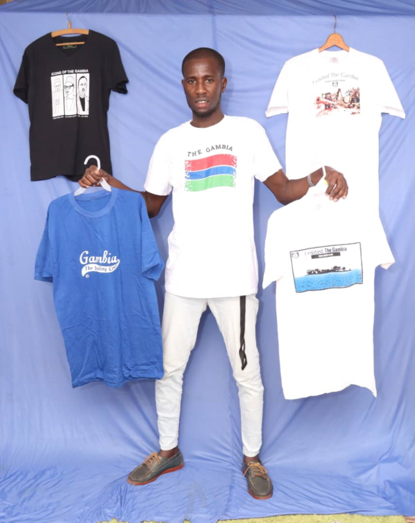 As he promotes and adds value to Gambian heritage and culture, most of his work includes designing and printing souvenir items for the Gambia National Museum, tourists, and other visitors on vacation or lovers of artworks.