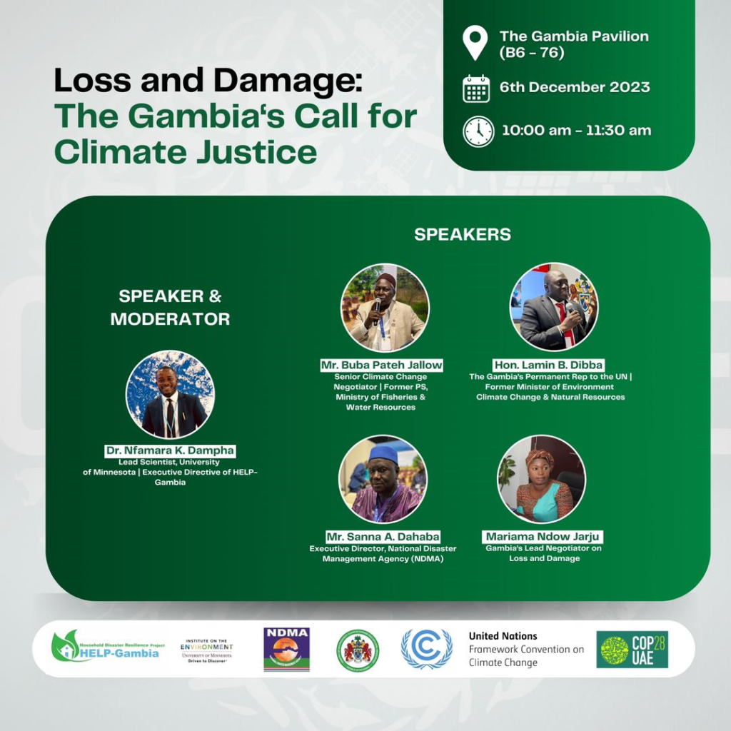 The Gambian delegation to COP 28 will today issue a call for climate justice and make a demand for the Loss and Damage Fund.