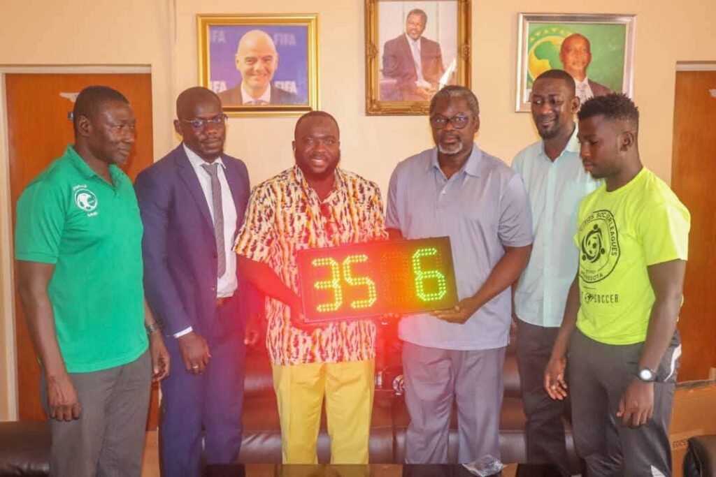The President of the Gambia Football Federation (GFF), Mr. Lamin Kaba Bajo, on Wednesday received Mr. Amadou Manneh, who presented a brand-new electronic referees changing board to the Federation.