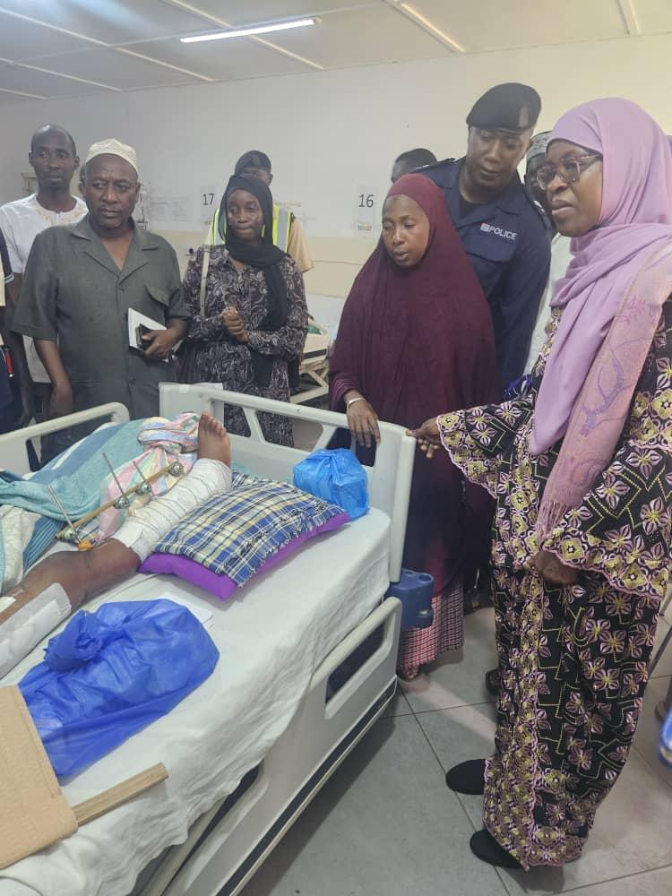 Hon. Dr. Habibatou Drammeh, Minister of Basic and Secondary Education (MoBSE), has visited the victim of the recent car drift accident at Ndemban Clinic, urging parents, school authorities, and the community to remain vigilant and work together to protect children from such dangers.
