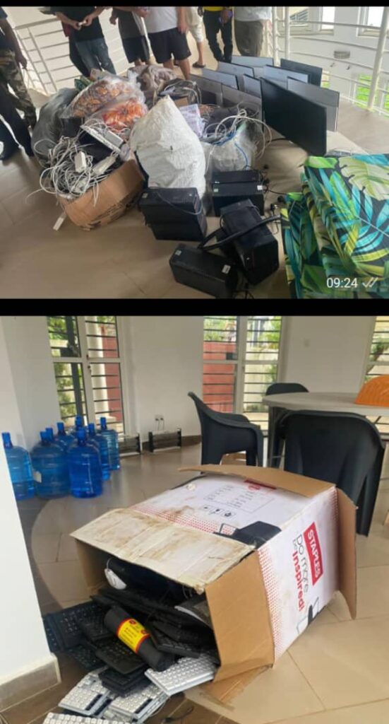 Recovered items included 32 Android phones (Motorola and Redmi brands), 112 iPhones, 153 desktop computers, two boxes containing additional desktop units, a flat-screen television, a Lenovo laptop, a safe, as well as various computer accessories such as keyboards, exercise books, computer mice, USB drives, and a number of non-Gambian SIM cards. Police say investigations into the matter are still on-going.