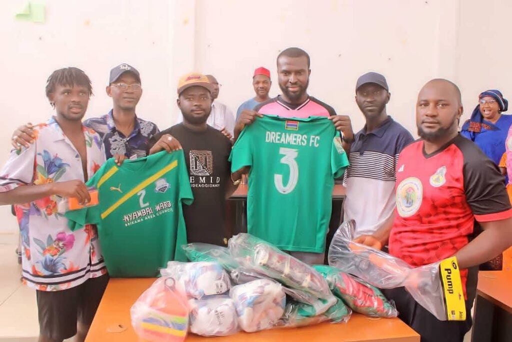Brikama Nyambai Ward Councillor, Momodou Jawo Jallow, has donated football equipment to seven local teams participating in the Brikama Sports Committee Summer Nawettan.