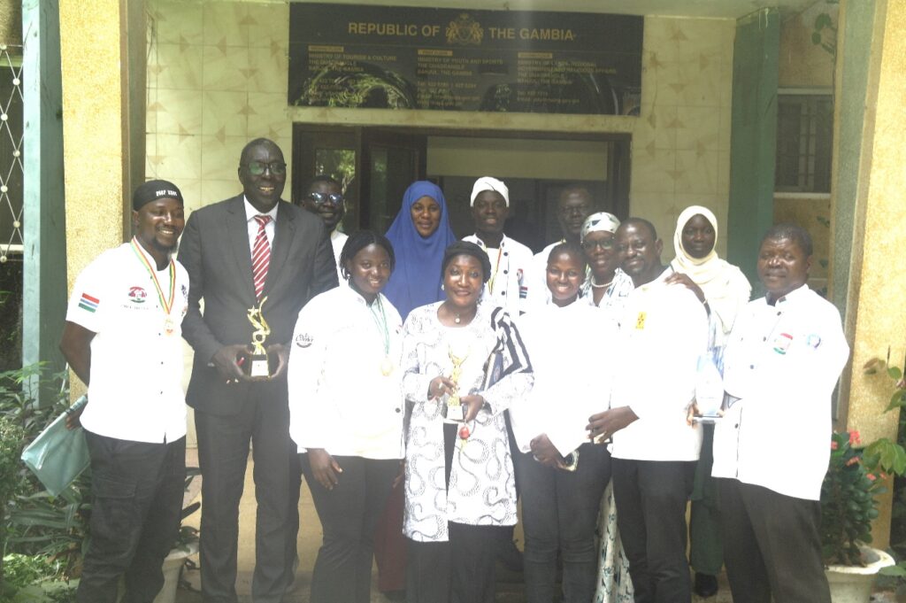 Honourable Abdoulie Jobe, Minister of Tourism, Arts and Culture, on Monday received and congratulated the triumphant members of the Gambia Chef Association following their brilliant performance at the West Africa Food Festival (WAFFEST) 2025.