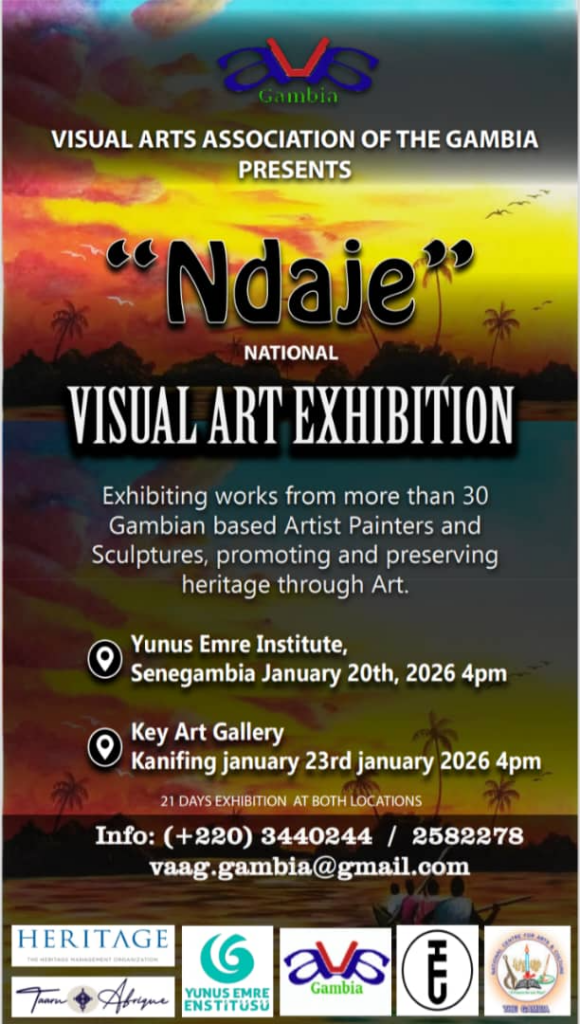 The Visual Arts Association of The Gambia (VAA) will stage the Ndaje National Visual Art Exhibition, a national showcase celebrating Gambian culture, heritage, and unity through visual arts. The exhibition opens on 20 January 2026 at the Yunus Emre Institute in Senegambia.